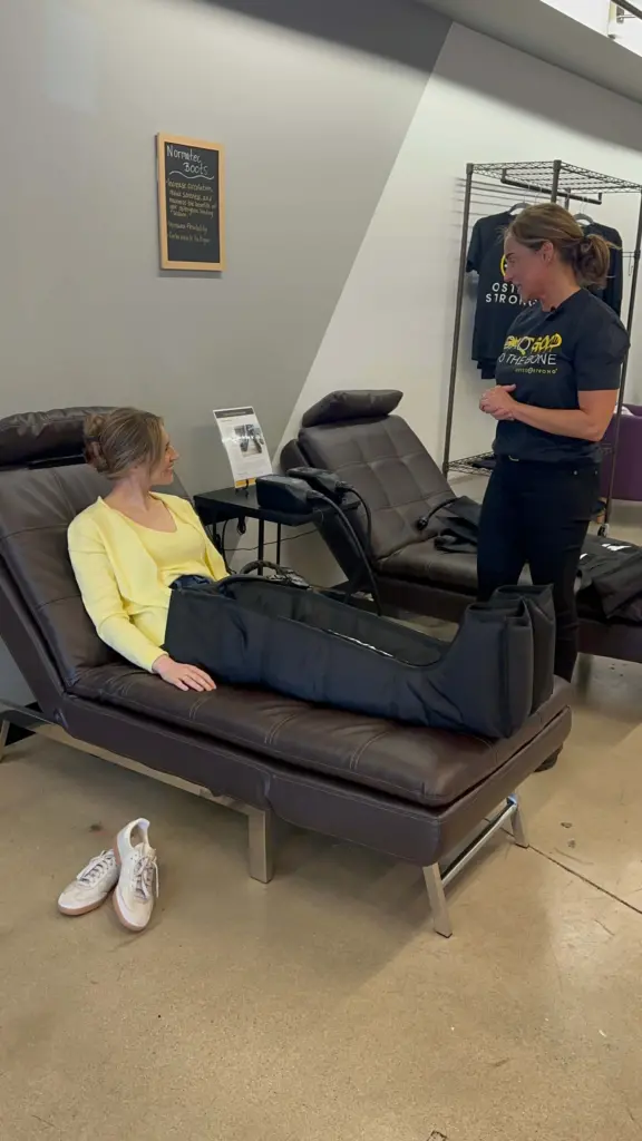 OsteoStrong sessions use a series of robotic musculoskeletal treatment devices that allow axial compression of bone to improve bone density, among other benefits.
